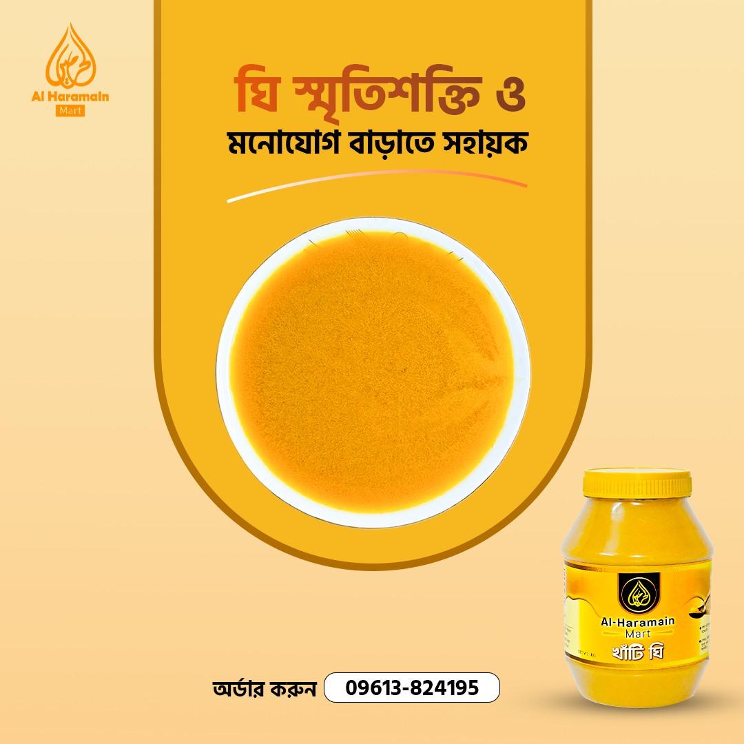 আপনি যদি খাঁটি ও স্বাস্থ্যসম্মত Gawa Ghee/গাওয়া ঘি খুঁজে থাকেন, তবে আল হারামাইন মার্ট আপনার জন্য নিয়ে এসেছে পাবনার নিজস্ব খামারে তৈরি খাঁটি ঘি। এটি সম্পূর্ণভাবে দেশি গরুর দুধ থেকে ঐতিহ্যবাহী পদ্ধতিতে তৈরি, যার গুণ ও স্বাদ দুইই অতুলনীয়।
